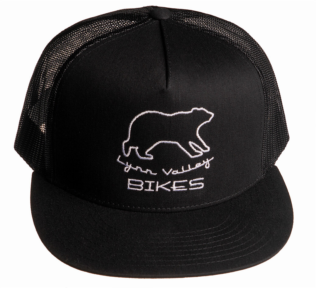 Tame that post-ride mane and support your favorite shop with our branded Yupoong Mesh Snap Back Trucker Hat.